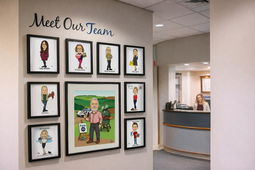 We work with professional firms and growing companies to create high-impact illustrated assets that reflect their people, culture and brand. From detailed team portraits and corporate caricatures to distinctive brand character design and cohesive visual identity work, every project is carefully composed and professionally delivered. With over 13 years’ experience creating bespoke illustration for businesses across the UK, we combine creativity with reliability — producing artwork that feels considered, impressive and built to last.