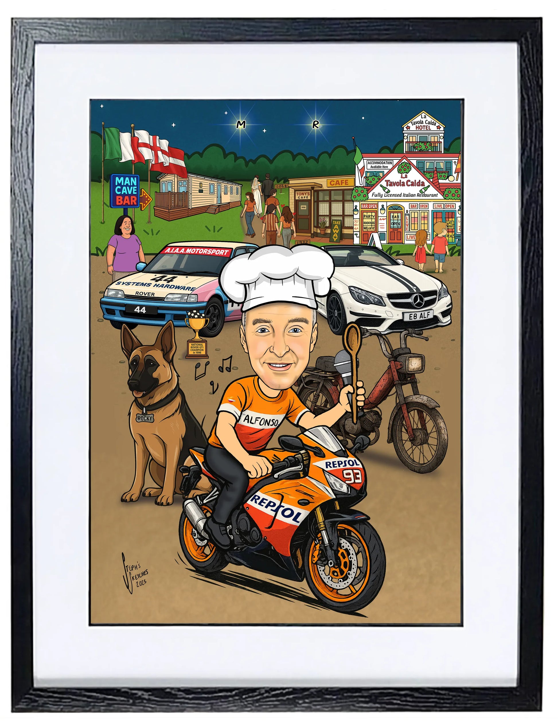 ✅Professionally printed on A3 card, mounted and delivered in a black wooden frame.